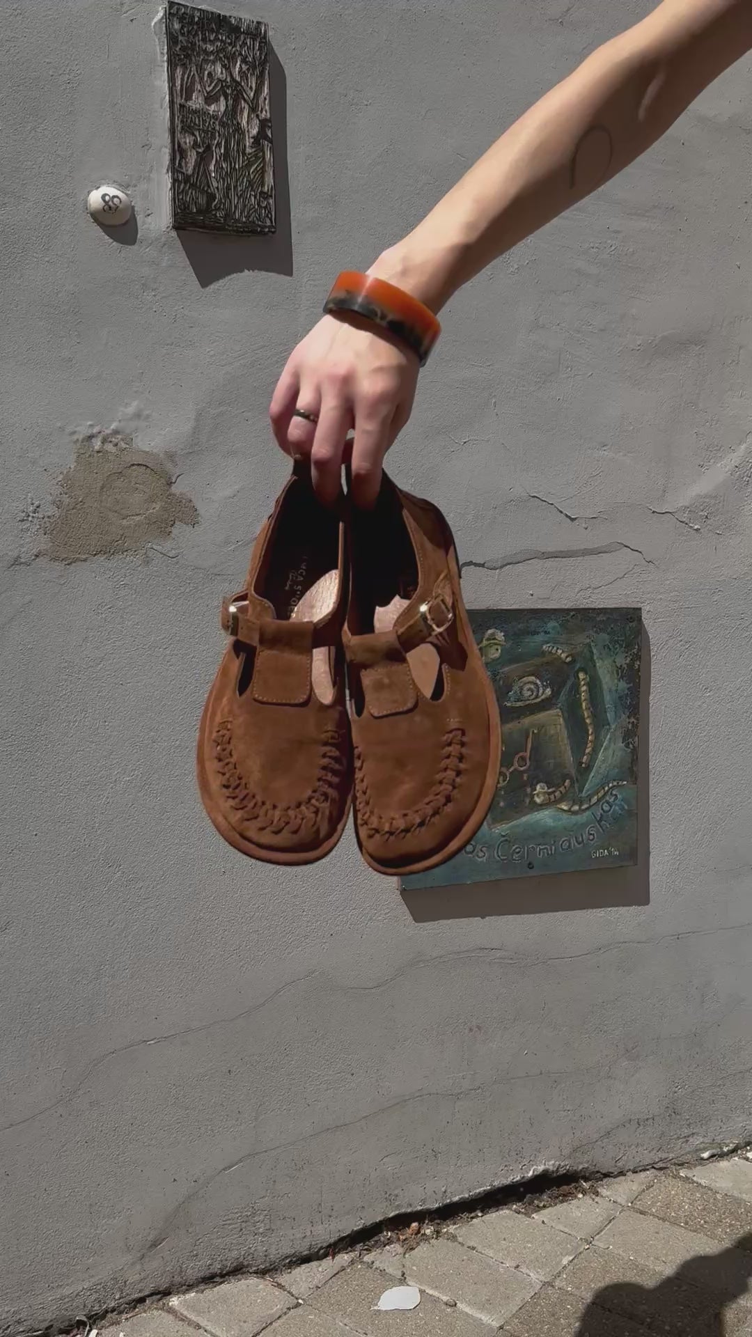 These aren't just Mary Jane shoes – they're a gentle rebellion against every childhood stereotype. This model, sewn from richly tanned leather, combines an iconic shape with a nostalgic weave at the front of the shoe, reminiscent of a time when rules were not so strict and dreams were bolder. The light, thin sole allows you to walk quietly, almost imperceptibly, while the adjustable strap allows you to customize the shoe as if it were made just for you. The perfect choice for those who still believe that gentleness can be a weapon.