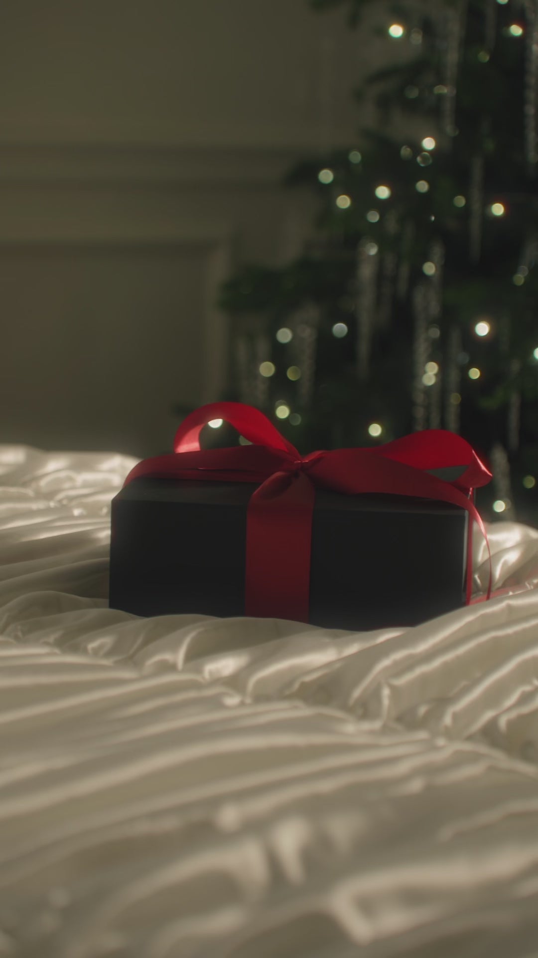 Juoda magnetinė dėžė, perrišta raudonu atlasiniu kaspinu, slepia tai, kas svarbiausia – šilumą. Lėtai atrišamas kaspinas, popieriaus šnaresys, ir minkšti, šviesūs kailio aksesuarai, kurie atrodo tarsi paimti iš šventinio sapno.