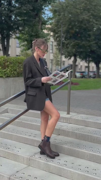 Šitie batai – tarsi sakinys be skyrybos klaidų. Klasikinis „Chelsea“ siluetas, lygiai įtempta ruda oda ir jokios pretenzijos būti daugiau nei reikia – bet būtent dėl to jie tokie stiprūs. Jie primena ramų pasitikėjimą savimi: tą, kuris neskuba įrodyti, bet visada žino, kur eina.