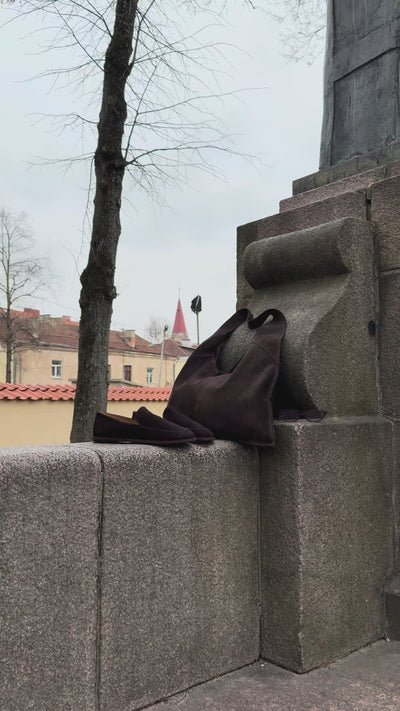 Gilus, beveik juodas šokolado atspalvis ir minkšta verstos odos faktūra suteikia šiems įsispiriamiems bateliams ramybės pojūtį. Švarus, vientisas siluetas be jokių perteklinių siūlių primena japonų minimalizmo estetiką, kurioje forma kalba pati už save. Juntamas pado lankstumas ir pėdą apglėbiantis medžiagos minkštumas sukuria intymią dėvėjimo patirtį, tinkančią ilgoms popietėms tarp knygų lentynų ar galerijų betoninių grindų. Tai objektas, kuris neturi lyties ar laiko žymės, organiškai įsiliejantis į garderobą kaip bazinis, bet charakteringas elementas.