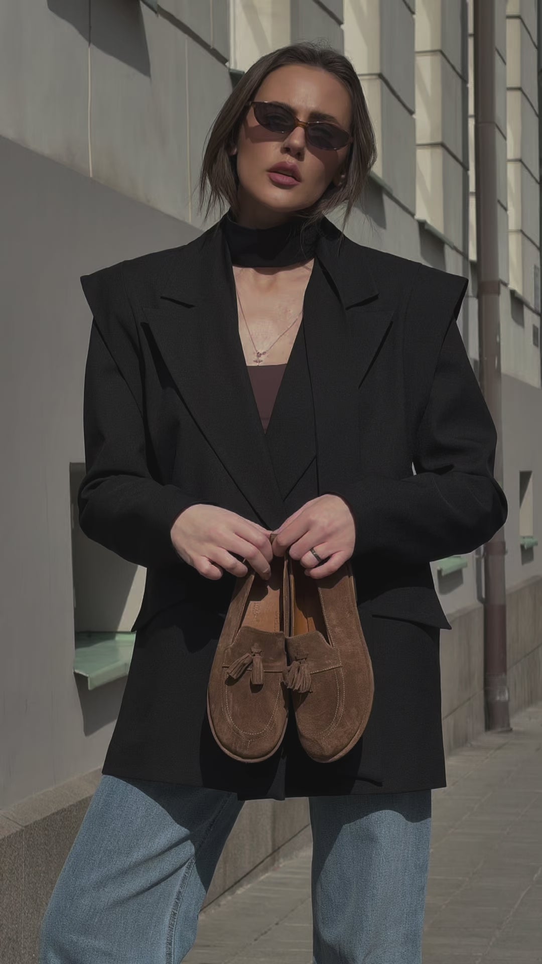 Švelni, tabako spalvos versta oda šiame mokasinų modelyje įgauna beveik aksominį gylį, o santūrūs kutai suteikia siluetui subtilaus akademinio svorio. Tai dizaino objektas, kurio prabanga slypi ne puošnumo demonstravime, o lytėjimo pojūtyje ir švarioje, kiek melancholiškoje linijoje. Jie geriausiai atsiskleidžia ramioje muziejaus skaityklos šviesoje ar lėtai judant per senamiesčio grindinį, kai apranga tampa tik tyliu fonu minčių tėkmei.