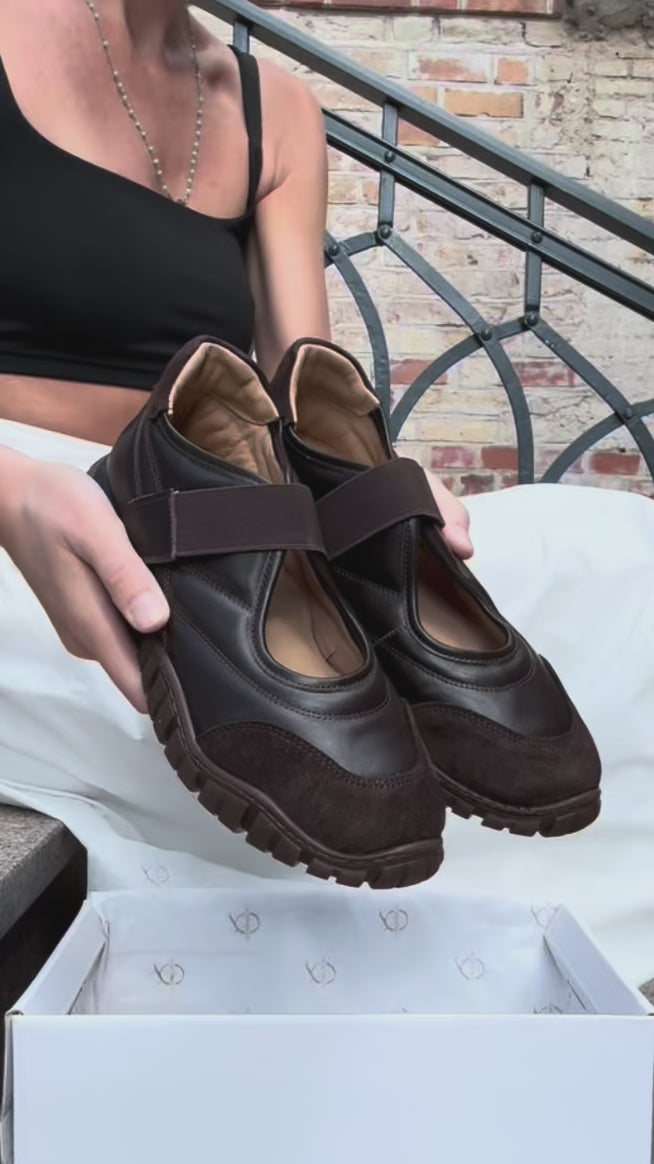 Šie batai – tai hibridas tarp klasikos ir funkcijos, tarp švelnumo ir paruošto judėjimui silueto. Sodrios rudos odos ir veliūro derinys kalba apie subtilumą, o griežtas, techninis padas primena, kad komfortas ir estetika gali būti viena. Jie skirti toms, kurios gyvena mieste, bet ne miesto taisyklėmis.