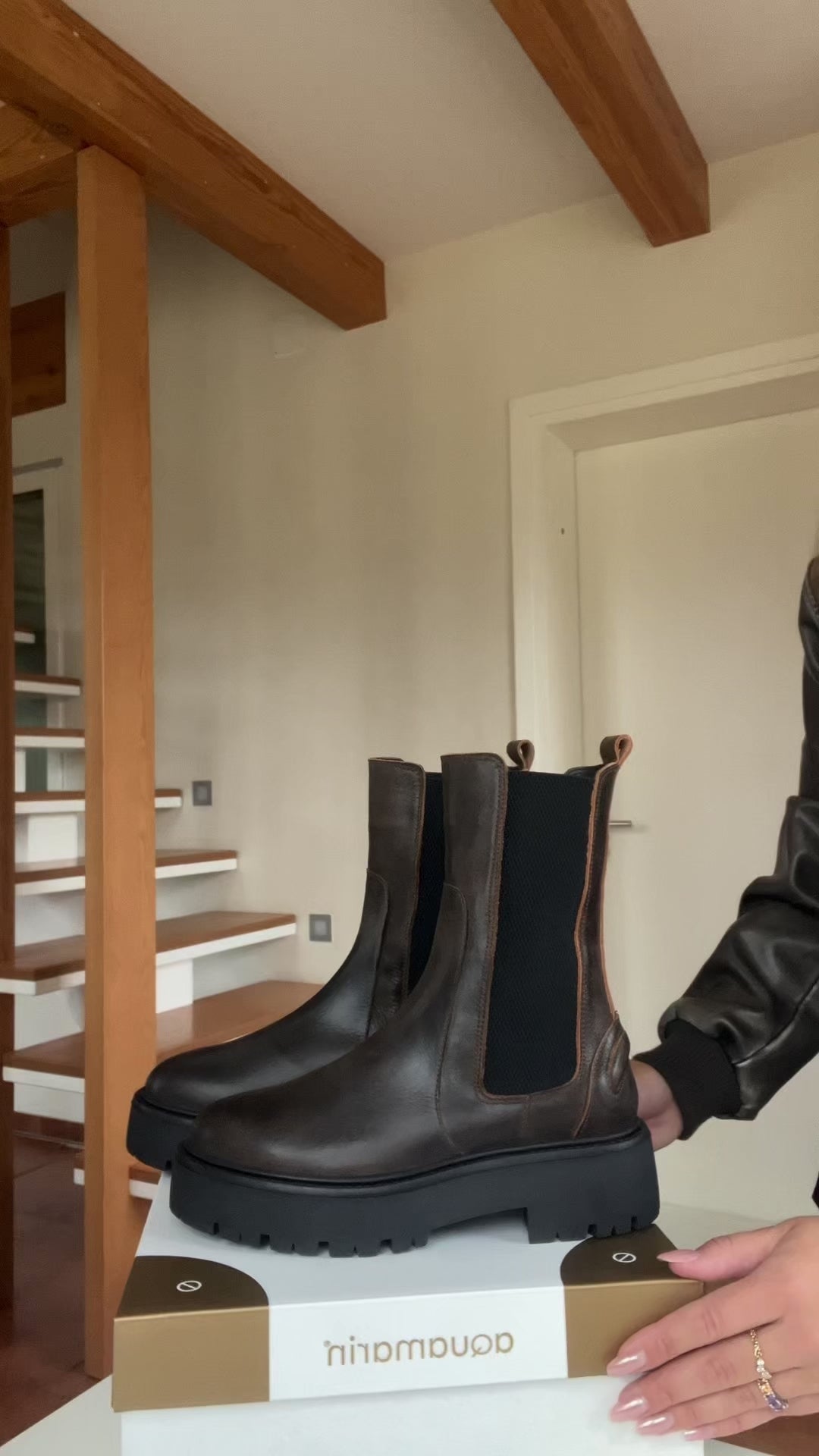 Šie tvirti rudos spalvos Chelsea stiliaus batai sukurti drąsioms ir aktyvioms moterims, kurios vertina praktiškumą ir stilių. Storas, grublėtas padas suteikia patogumą ir stabilumą visą dieną, o elastingi šonai leidžia lengvai juos apsiauti.
