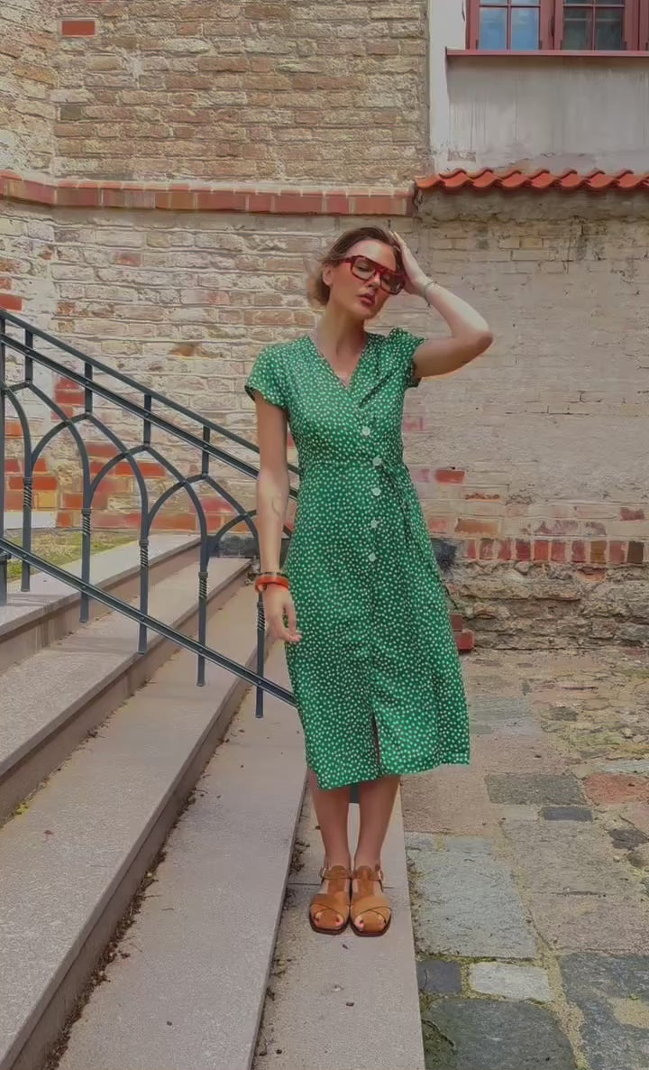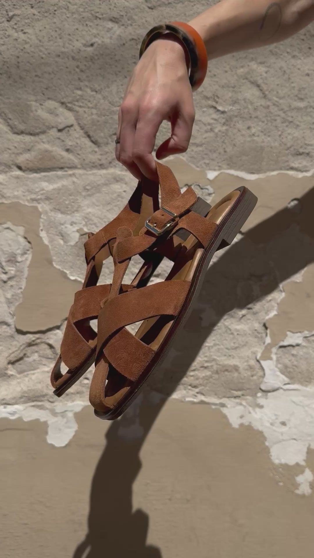 Šios kreminio karamėlės atspalvio odinės basutės – tai rafinuotas klasikos perrašymas, skirtas toms, kurios vertina estetiką be pastangų. Plačios zomšinės juostos kerta pėdą kampu taip, tarsi žinotų, ką daro – kiekvienas kampas čia turi savo geometriją. Grakštus siluetas, subtili aukso spalvos sagtis ir švelnus vidpadis garantuoja patogumą net ir tada, kai nesi linkusi rinktis „patogiai“. Tarsi atsitiktinai žavingos – kaip moteris, kuri įpratusi būti žiūrima, bet nejausdama poreikio atsakyti tuo pačiu.