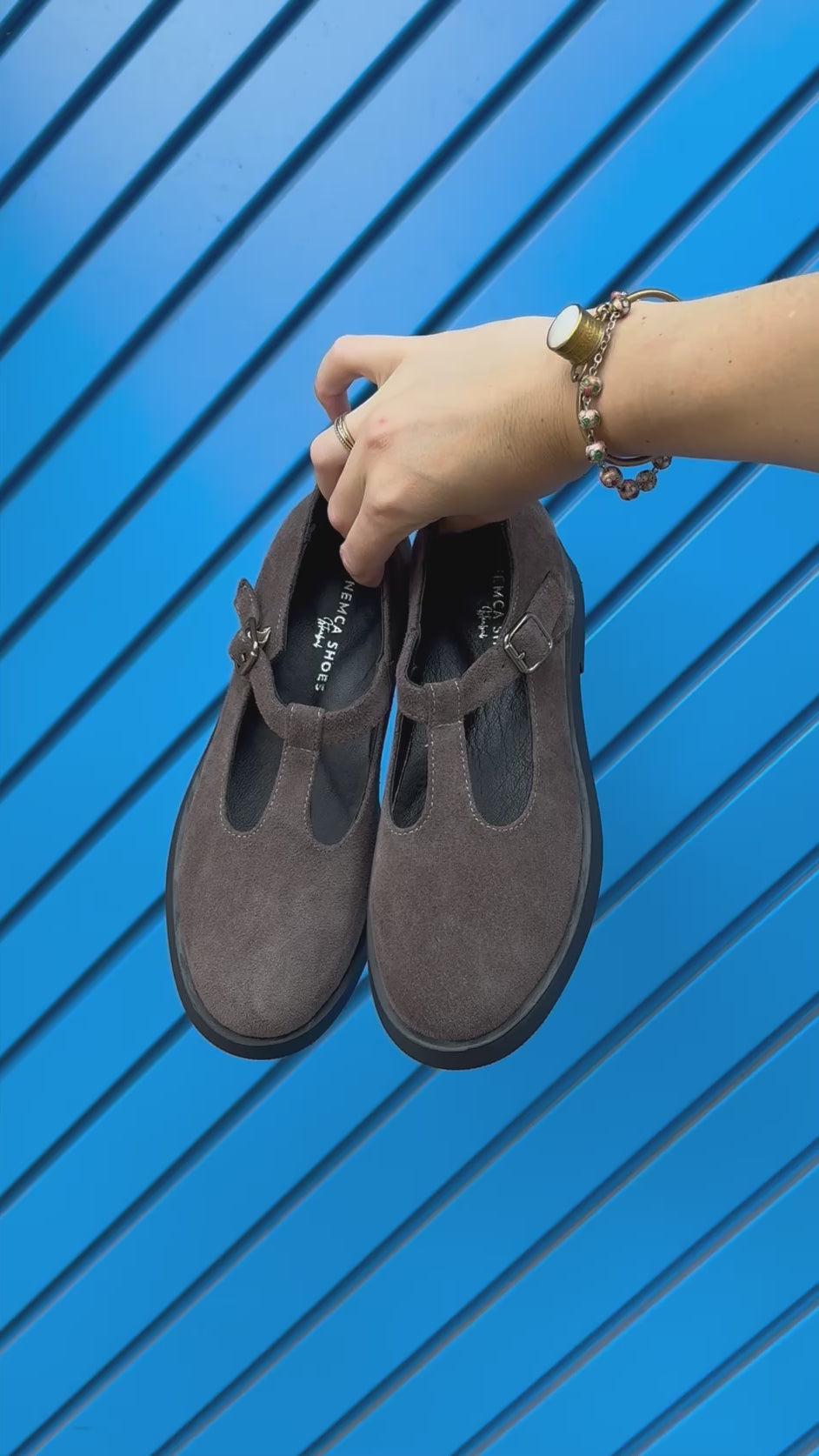 Šie pilkai rudi Mary Jane bateliai – tai tylus kontrapunktas šiuolaikinei perkrovai. Versta oda sugeria šviesą, o ne ją atspindi; sagtelė – ne akcentas, o ritminė pauzė siluete. Jie tinka ne todėl, kad rėkia, o todėl, kad supranta, kada patylėti.