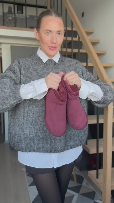 Gilus, uogų įkvėptas atspalvis ir minkštas paviršius kuria šilumos ir saugumo iliuziją, kuri veikia ne tik vizualiai. Šie batai – tai žiemos būsenos manifestas: lėtas rytas, šiltas kavos puodelis ir jokių kompromisų komfortui. Jie atrodo tarsi namai, kuriuos gali apsiauti. Kai norisi paprasto, bet ne prasto – būtent jie ir yra atsakymas.